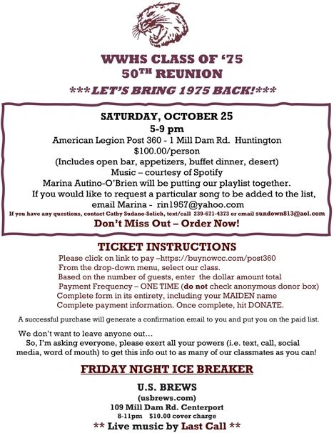 FOR CLASS REUNIONS CLICK 'UPCOMING' TAB